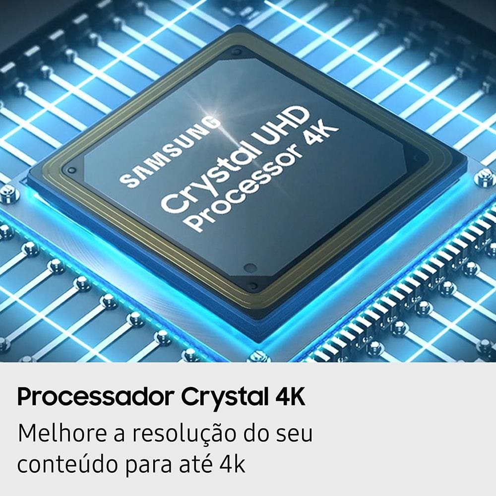 Características Gerais: - TV Crystal UHD 4K de 65” - Resolução 3840 x 2160 pixels - Processador Crystal 4K - Gaming Hub com Xbox Cloud Gaming e GeForce Now - Soundbar Samsung HW-B400F/ZD - Tecnologia Q-Symphony - Som Adaptativo e AI Energy Mode - Canais 2.0