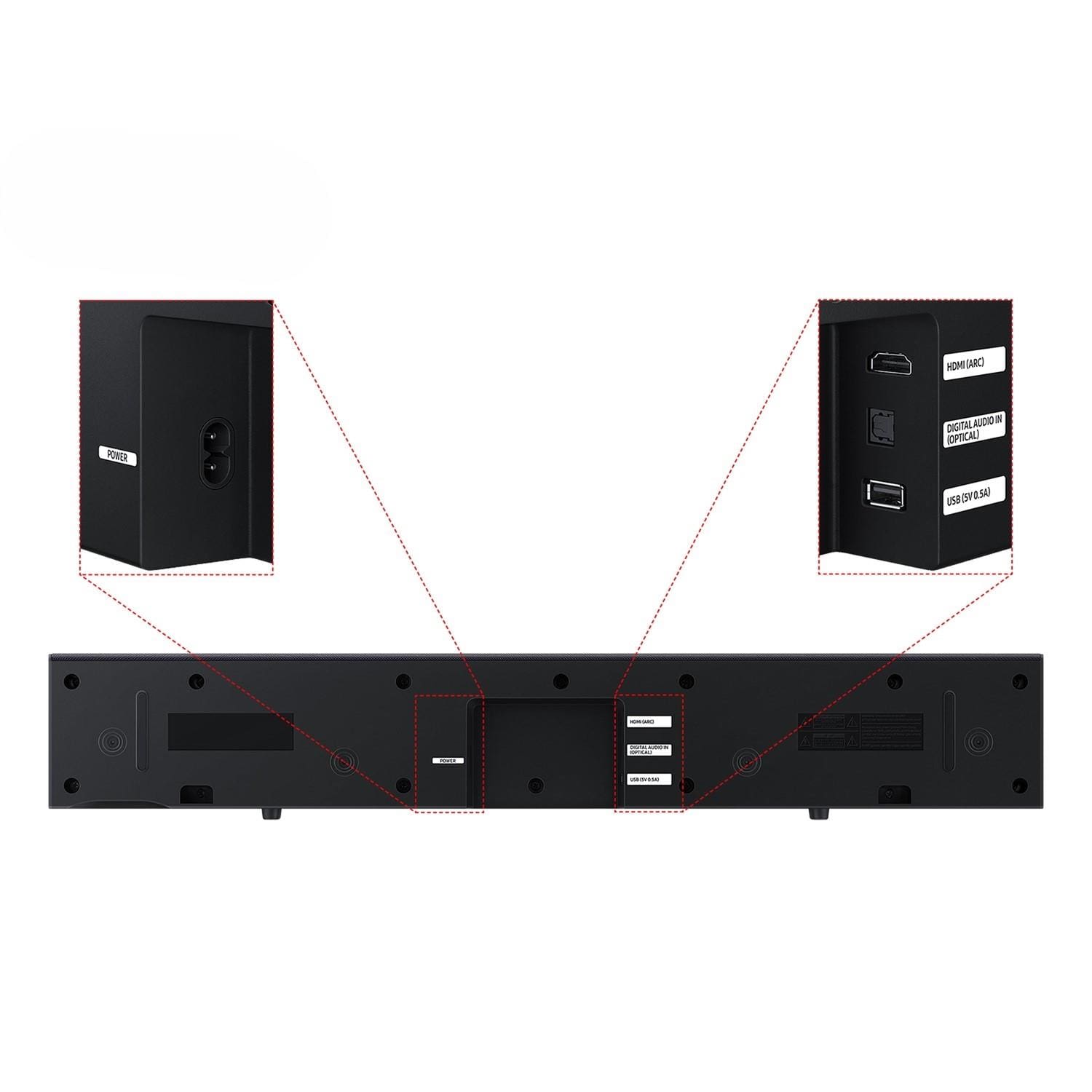 Conexões: - TV - Bluetooth 5.2 - Ethernet (LAN) - Entrada de RF - Soundbar - Entrada HDMI (ARC) - Entrada Óptica - Entrada USB (5V 0.5A)