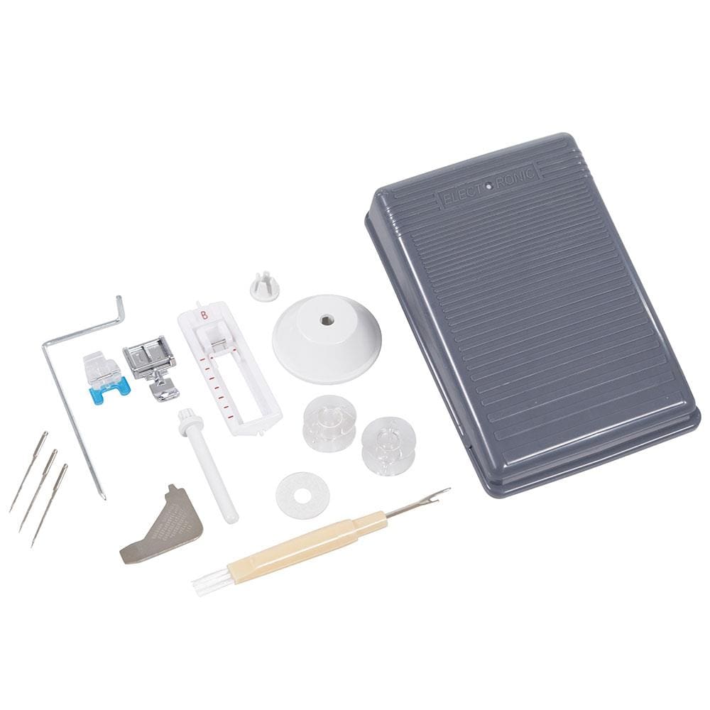 Com ajuste de pressão da sapatilha e estrutura de metal que garante maior estabilidade durante e costura. E ainda tem braço livre para facilitar a costura em áreas de difícil acesso, como mangas de camisa e pernas de calças.