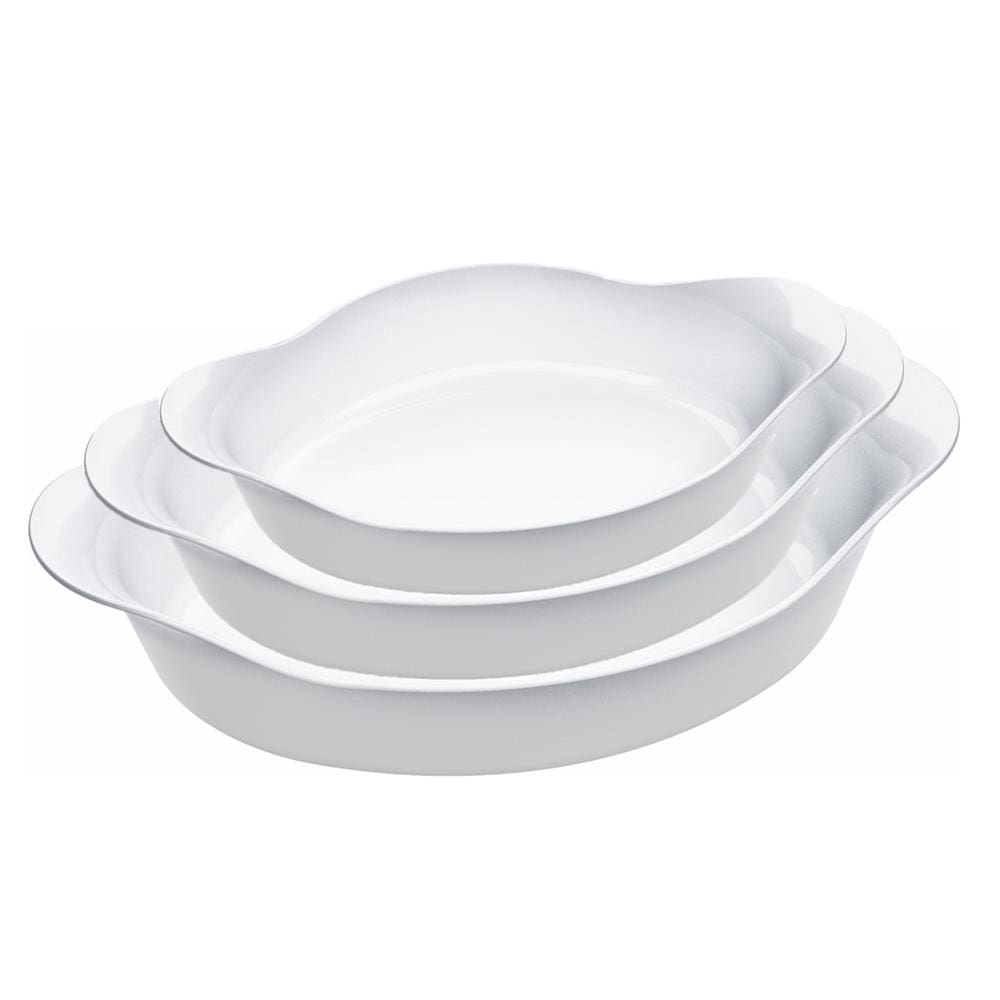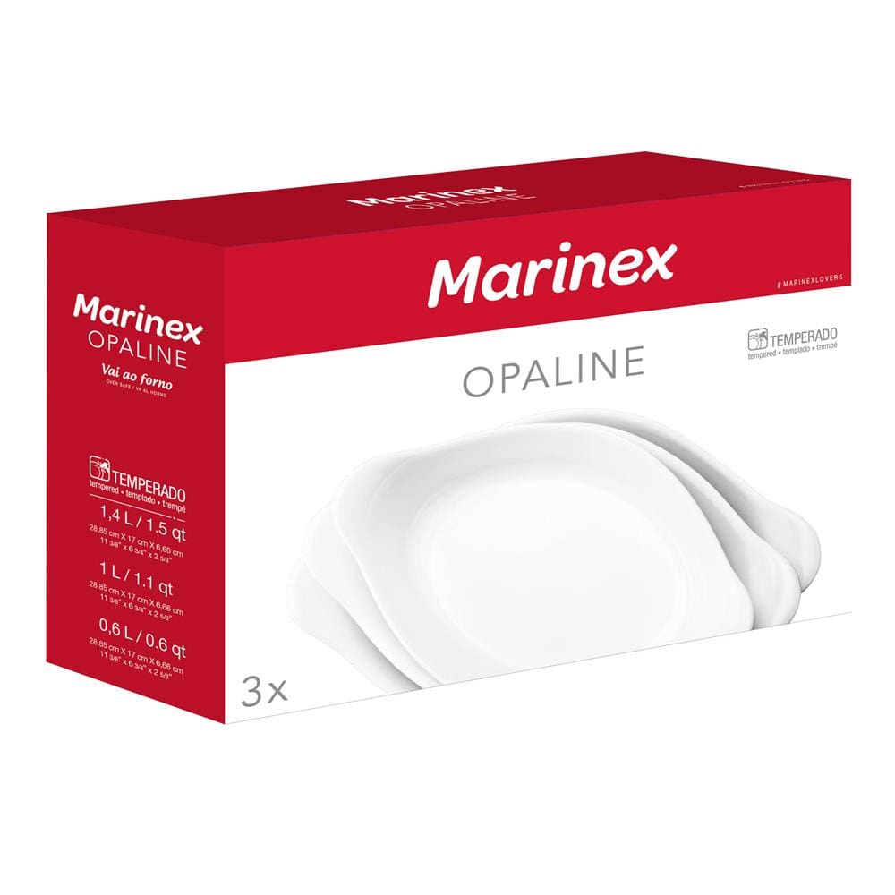 Conjunto de Assadeiras Ovais Marinex Opaline em Vidro Temperado – 3 Peças