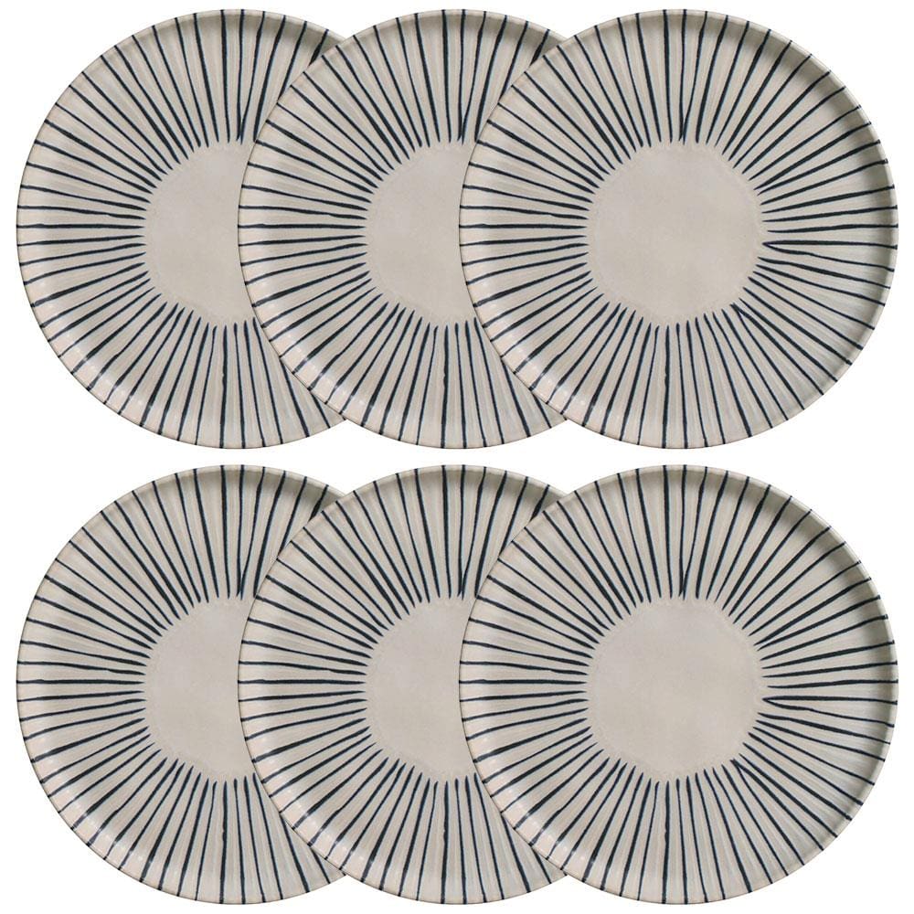Esse conjunto conta com 6 pratos de sobremesa em formato redondo, produzidos em Stoneware, a uma temperatura média de 900°C. Cada peça possui 21,5 centímetros de diâmetro por 2 centímetros de profundidade e acabamento esmaltado.