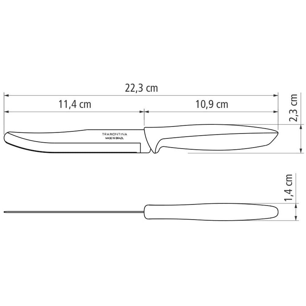 Características Gerais: - Lâmina com fio liso para maior segurança - Ideal para cortar e descascar frutas diversas - Lâmina de aço inox: maior durabilidade do fio devido ao tratamento térmico - Cabo de polipropileno: possui maior resistência e durabilidade - Pode ir à máquina de lavar louças facilitando seu dia a dia - Peso: 0,03 kg - Dimensões (AxLxP): 22,3 x 2,3 x 1,4 cm