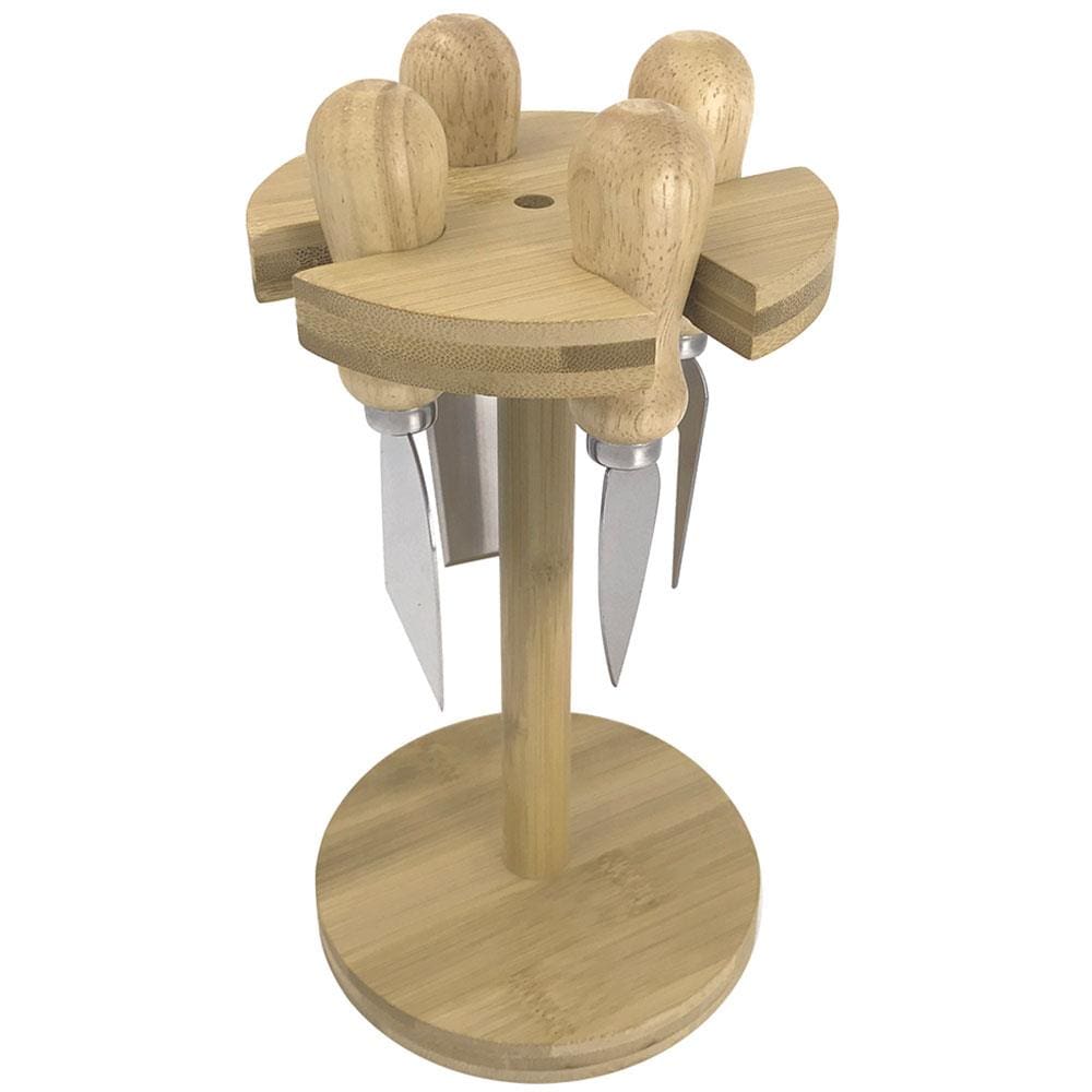 Conjunto de Facas para Queijo Dynasty em Inox e Suporte em Bambum - 4 peças