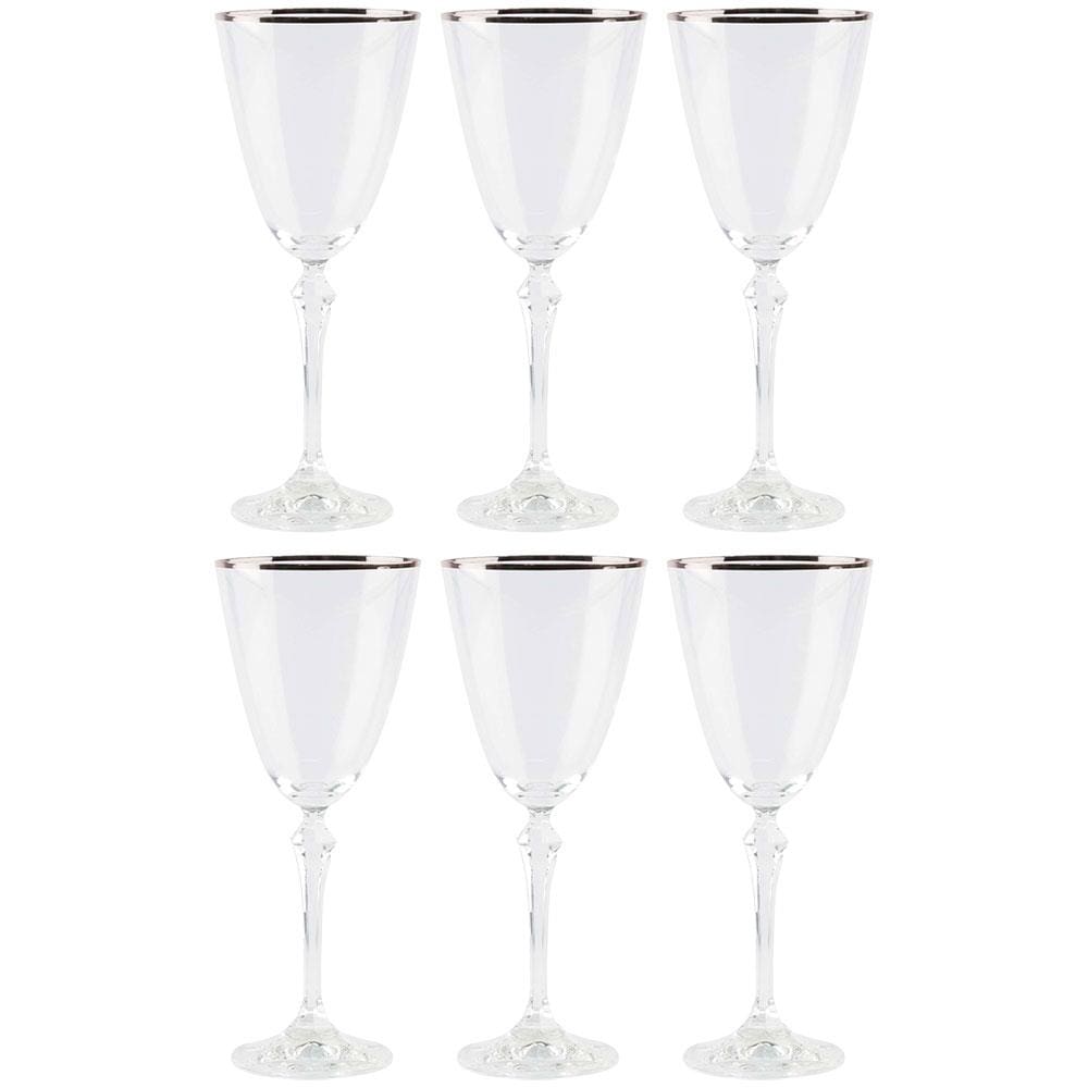 Conjunto de Taças para Água Bohemia Silver Rim 350ml - 6 Peças