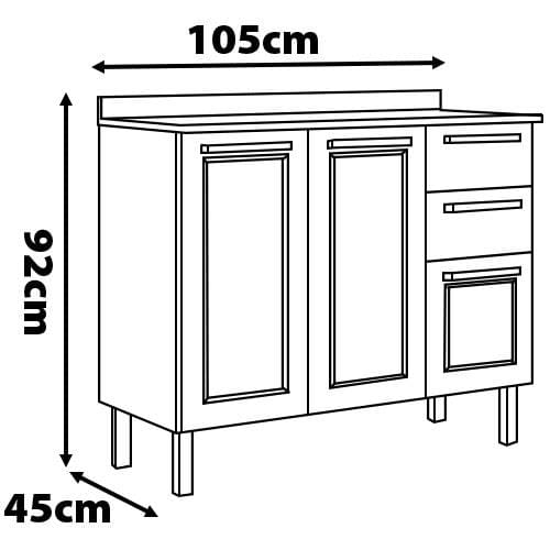 Observações: • Item composto APENAS pelo Balcão Triplo Itatiaia Florença com 3 Portas, 2 Gavetas e 2 Prateleiras - 105cm de largura. Demais peças e acessórios são meramente ilustrativos e NÃO fazem parte do conteúdo da embalagem. - Limpeza com pano umedecido