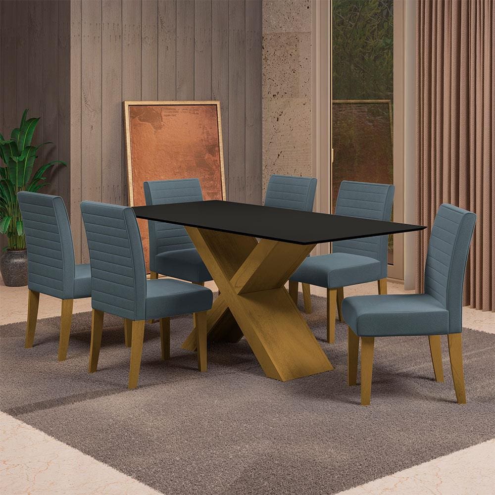 Mesa de Jantar Retangular Dobuê Creta Light 180x90cm com 6 Cadeiras Estofadas Revestidas em Tecido Veloplus