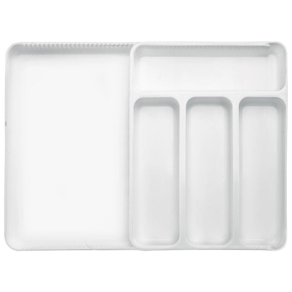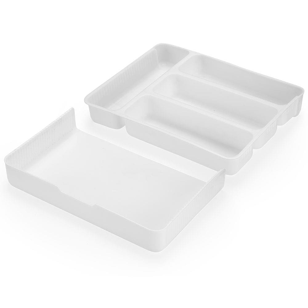 Possui quatro divisórias padrão e uma quinta extensível, para encaixar em gavetas pequenas e grandes com facilidade.