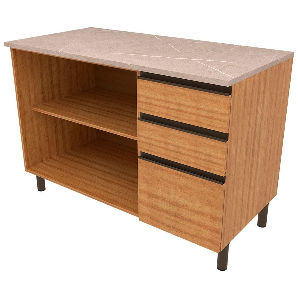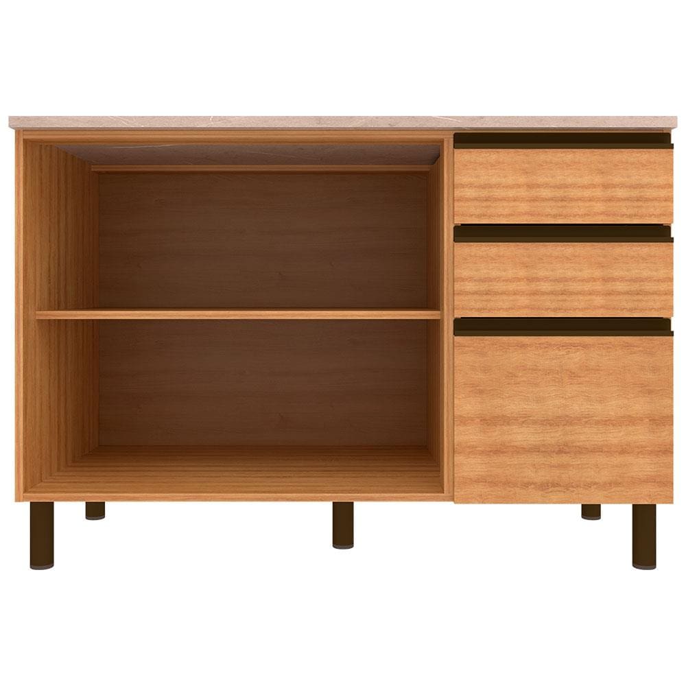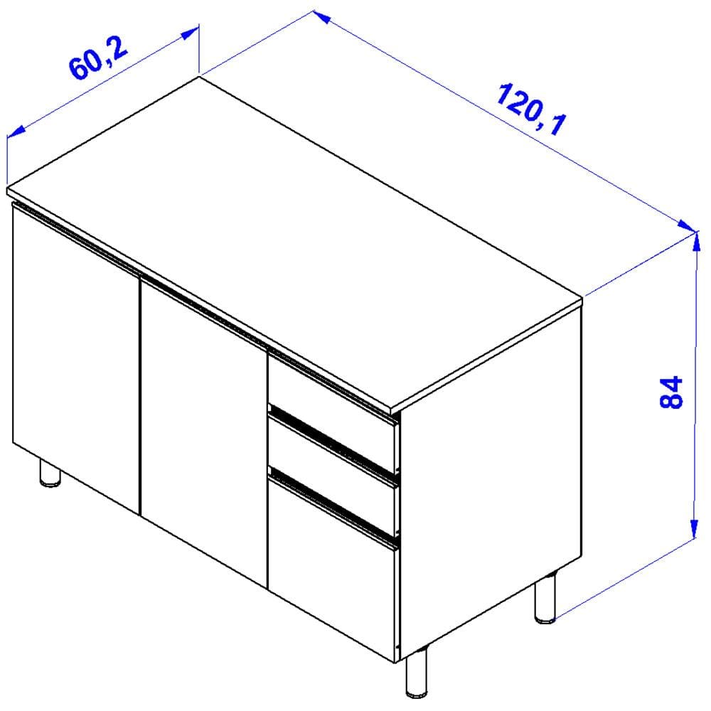 Balcão Bartira Cristal MDP 15mm com 2 Portas, 3 Gavetas e 1 Prateleira - 120,1cm de largura