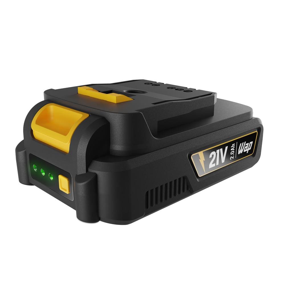 A bateria Li-íon removível da WAP, compatível com todos os produtos da linha 21V, possui uma vida útil maior e reduz a necessidade de múltiplas baterias. O indicador LED permite verificar o nível de energia restante a qualquer momento.