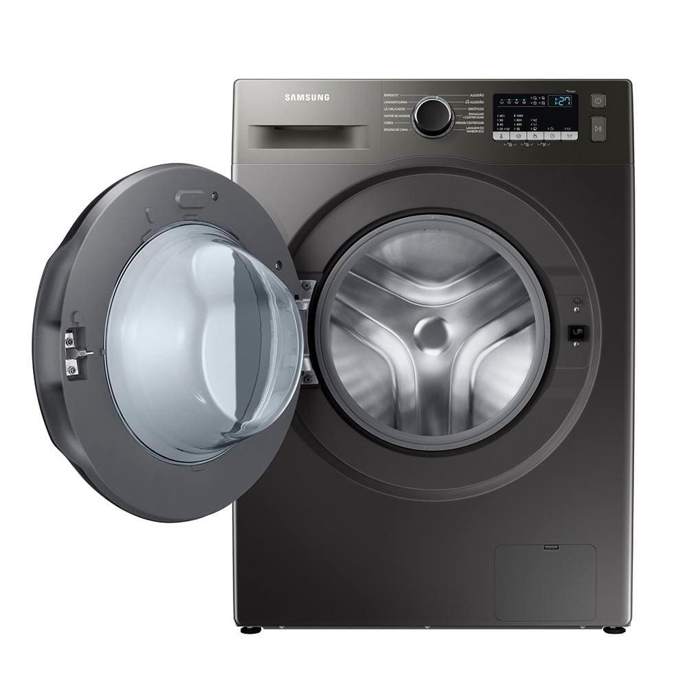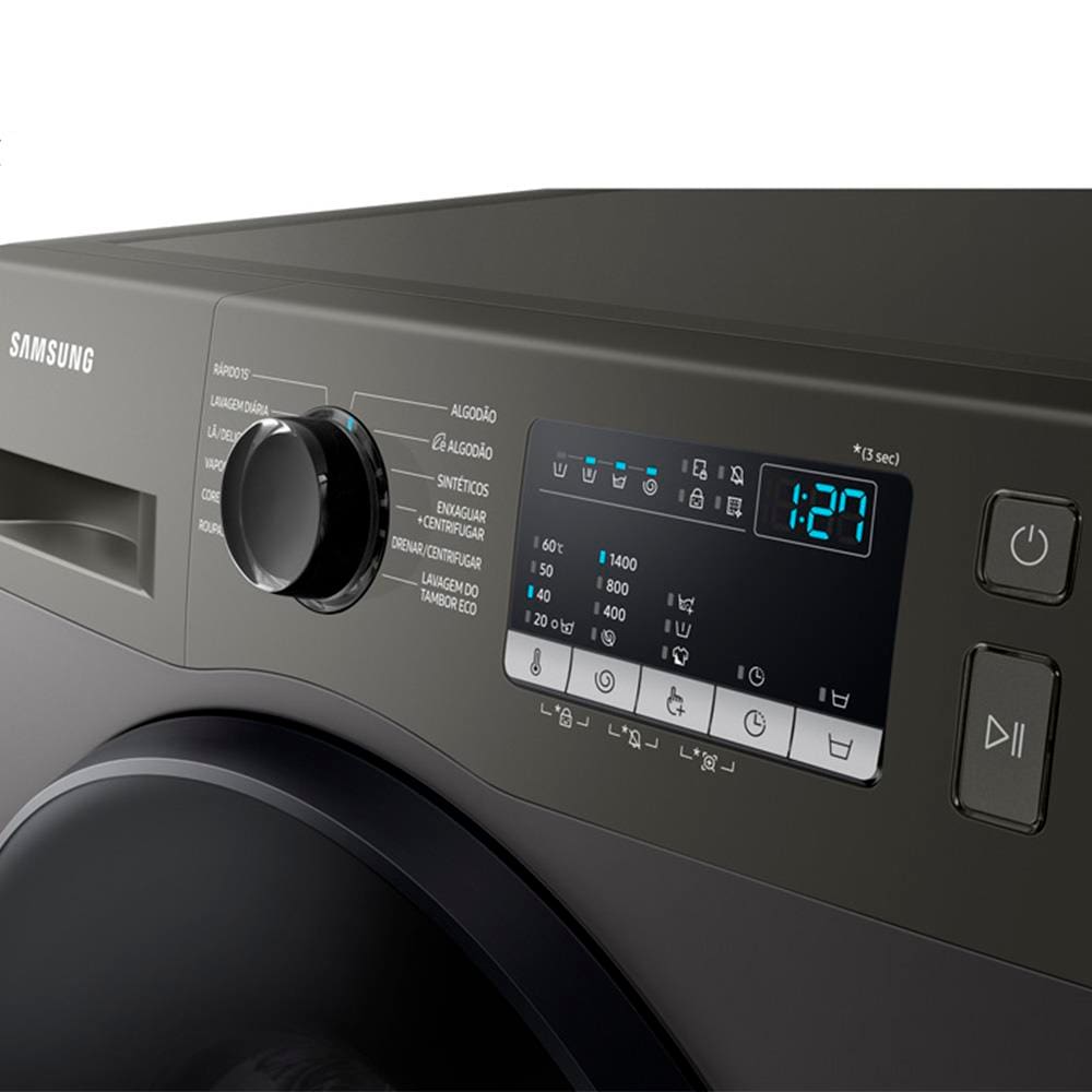 Conteúdo da embalagem: -1 Lavadora de Roupas Samsung WW11T4040BXFAZ com Diamond Drum e Vapor de higiene Inox - 11kg;