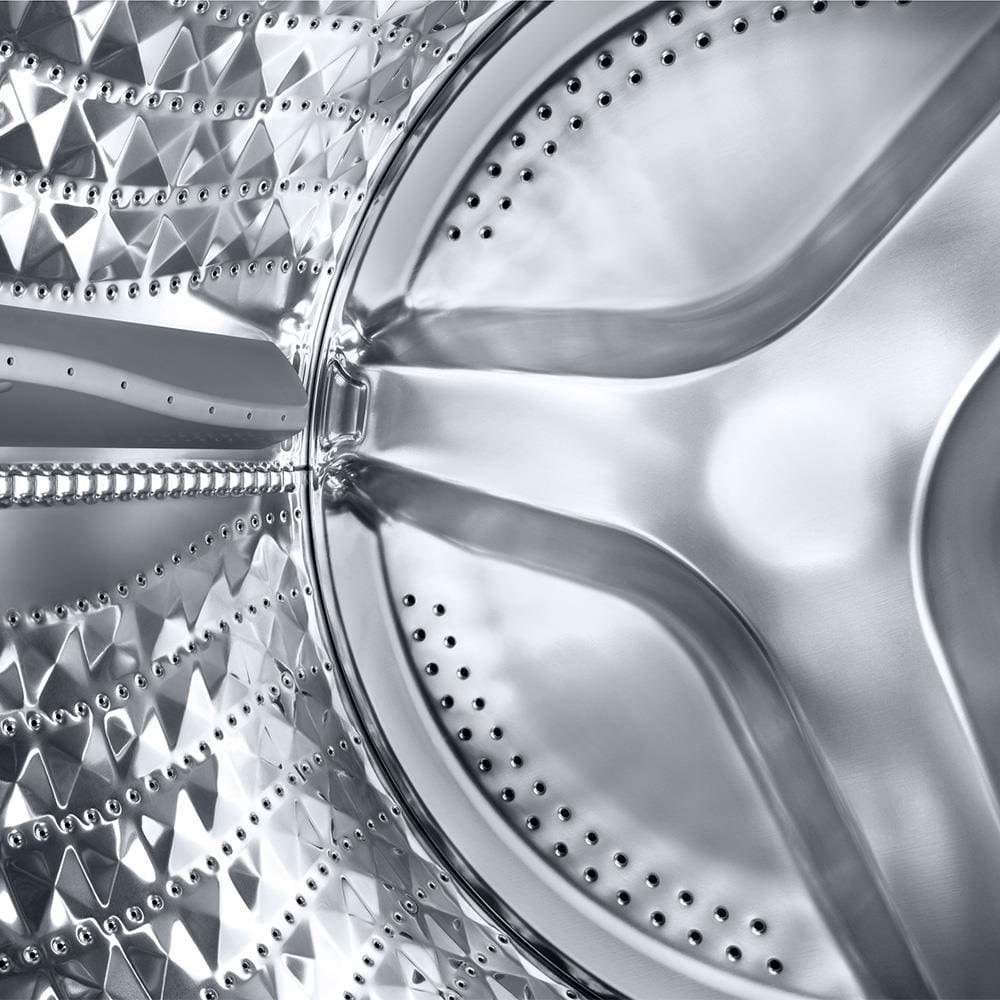 O tambor da Samsung WW11T é projetado com a exclusiva tecnologia Diamond Drum, que combina eficiência com um cuidado especial para suas roupas. Seu design em forma de diamante e os pequenos orifícios de drenagem minimizam o atrito e evitam o desgaste dos tecidos, prevenindo que suas roupas desfiem durante o ciclo de lavagem.