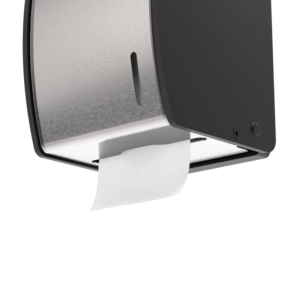 O Porta Papel Higiênico Brinox combina aço inox escovado e polipropileno preto em um design sofisticado. Possui sistema com chave e é de fácil instalação.