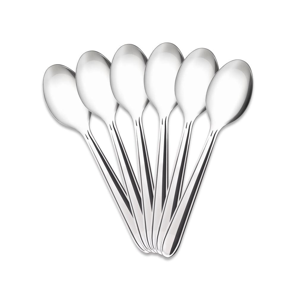 As colheres são confeccionadas inteiramente em aço inoxidável com acabamento polido, garantindo firmeza, brilho duradouro e maior resistência ao uso contínuo. O friso discreto no cabo é a marca registrada da linha Turim, trazendo um toque de sofisticação ao design clássico.