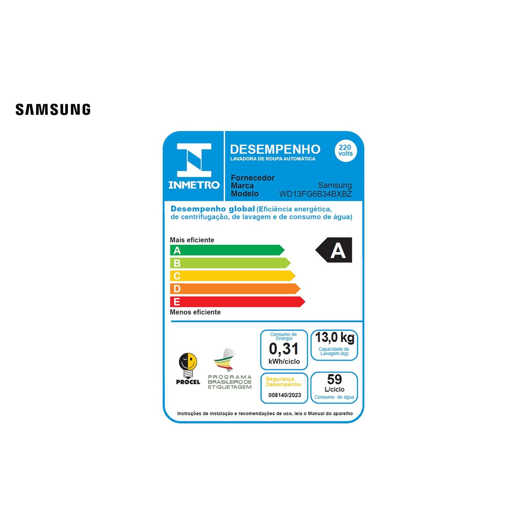 A Lava e Seca WD13FG da Samsung é a solução 3 em 1 que transforma sua lavanderia. Compacta, inteligente e econômica, ela oferece máxima eficiência e cuidado superior com as roupas, sem abrir mão da sustentabilidade.