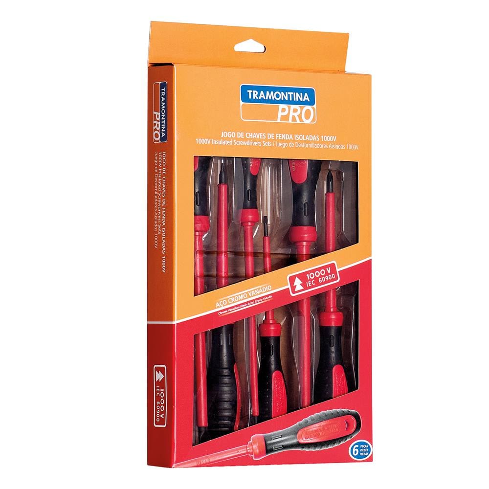 O Jogo de Chaves de Fenda IEC Tramontina Pro – 6 Peças é ideal para profissionais que trabalham em área de risco e redes energizadas, pois as ferramentas deste kit possuem aplicação de duas camadas de isolação em cores diferenciadas, para imediata identificação de danos ao isolamento.