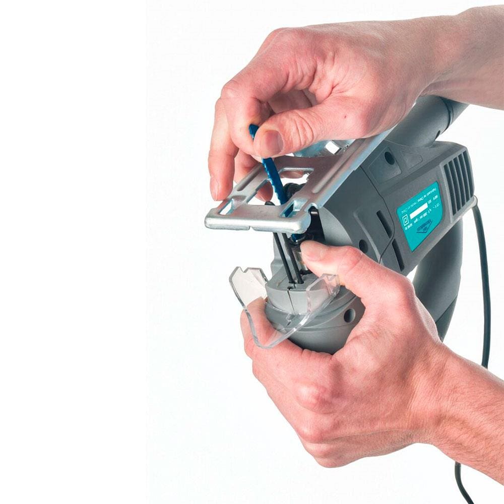 Características Gerais: - Potência: 600 W. - Frequência: 50/60 Hz. - Velocidade: 0 - 3000 min-1 / gpm. - Comprimento do golpe: 18 mm. - Ângulo de corte: 0 - 45°. - Espessura máxima de corte: - Madeira: 65 mm. - Aço: 8 mm. - Alumínio: 10 mm. - Corpo e botões injetados. - Trava do gatilho para trabalhos contínuos. - Ação orbital em 3 níveis + corte normal. - Suporte com rolete guia para lâmina. - Sistema de troca rápida para a lâmina. - Possui encaixe para aspirador de pó. - Motor robusto de alto desempenho. - Possui botão seletor de velocidade, possibilitando ao usuário a seleção de 6 níveis diferentes de velocidade. - 100% montada sobre rolamentos, proporcionado maior vida útil ao equipamento. - Projetada para trabalhos domésticos de cortes.
