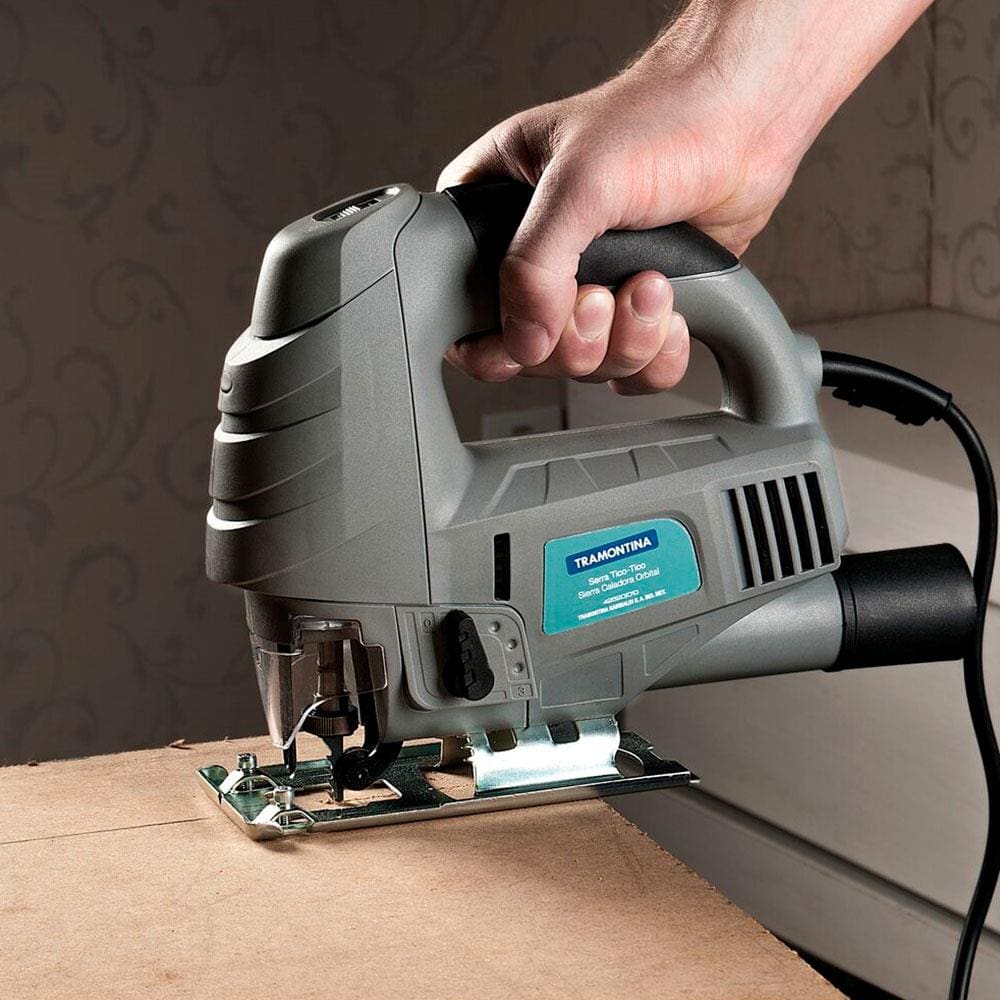 A serra tico-tico da Tramontina foi projetada para trabalhos domésticos de corte, principalmente com madeiras. Possui trava do gatilho para trabalhos contínuos, ação orbital em 3 níveis + corte normal, suporte com rolete guia para lâmina, sistema de troca rápida para a lâmina, motor robusto de alto desempenho, botão seletor de velocidade que possibilita ao usuário a seleção de 6 níveis diferentes de velocidade e estrutura 100% montada sobre rolamentos, que proporciona maior vida útil ao equipamento. E o melhor, seu encaixe para aspirador de pó, permite que todos os trabalhos sejam feitos sem sujeira pela casa. Este produto não pode faltar na sua caixa de ferramentas.